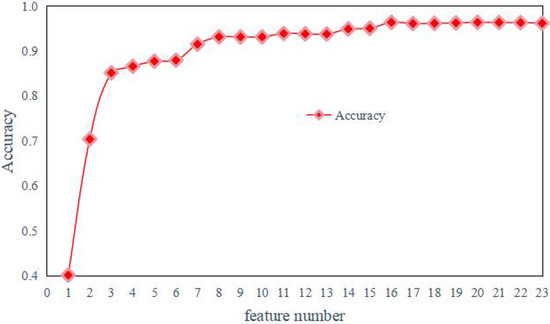 The algorithm is judged whether the stopping condition is satisfied, that is, whether the feature set F-S is empty or whether the set S is the same as the set F contained elements. If so, the loop is skipped, otherwise, the relevance and redundancy calculation steps are repeated. At the end of the loop, the set is obtained in descending order of feature importance. finally, the features in the set are selected using the feature-by-feature selection method to obtain the optimal feature subset .