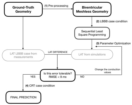- Gomez, J.F.; Trenor, B.; Sebastian, R. Prediction of CRT Activation Sequence by Personalization of Biventricular Models from Electroanatomical Maps. In International Workshop on Statistical Atlases and Computational Models of the Heart; Springer: Berlin/Heidelberg, Germany, 2019; pp. 342–351. [Google Scholar]
