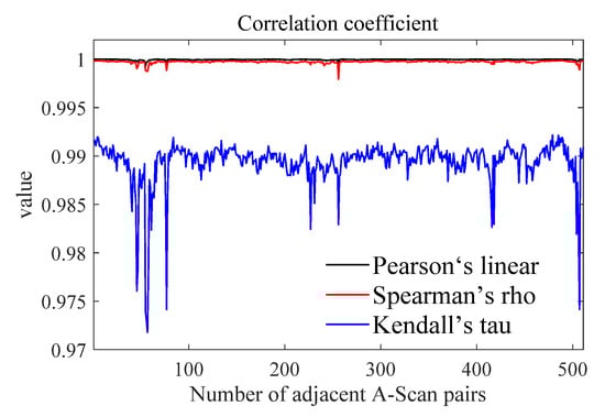 Correlation coefficients of the adjacent A-Scans in Figure 1.