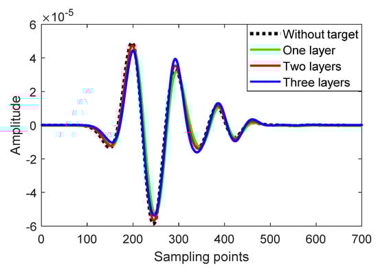The predicted wavelets of the new models are used for background elimination. Figure 12 indicates that the predicted wavelets removal can highlight the target information, while the B-scan obtained with other methods still has some layered signal residues. Therefore, the LSTM wavelet prediction network model is suitable for the layered medium model of different layers and thicknesses.