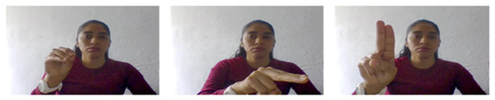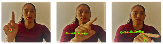 Keyframes are the representation of the elements in the image sequences. In this model, the keyframes have been extracted that exhibit the dynamic hand gestures. Each hand shows a gesture that is localized by a set of points. To find the difference in the positions of the landmarks, the first and the pause frame sequences are taken as the keyframes. Figure 6 illustrates the change in the position of the pixel between different frames. The first frame is well established. To find the motion of the hand gestures, we have adopted the following method of frame difference as defined in Equation (10) [52,53,54,55,56].