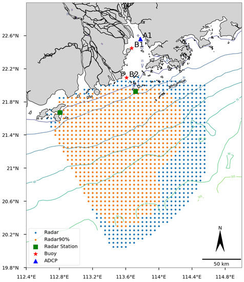 - Graber, H.C.; Haus, B.K.; Chapman, R.D.; Shay, L.K. HF Radar Comparisons with Moored Estimates of Current Speed and Direction: Expected Differences and Implications. J. Geophys. Res. Ocean. 1997, 102, 18749–18766. [Google Scholar] [CrossRef] [Green Version]