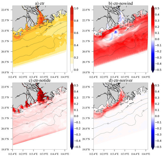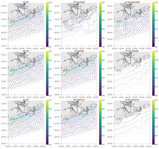 - Zu, T.; Wang, D.; Gan, J.; Guan, W. On the Role of Wind and Tide in Generating Variability of Pearl River Plume during Summer in a Coupled Wide Estuary and Shelf System. J. Mar. Syst. 2014, 136, 65–79. [Google Scholar] [CrossRef]