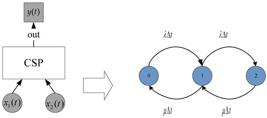 In the CSP logic gate, the input event and output event have two states: state 0 is the normal working state, while state 1 is the fault state. According to the relationship between the input and output events and , a list of the quantitative operation rules of the CSP gate can be obtained, as shown in Table 4.