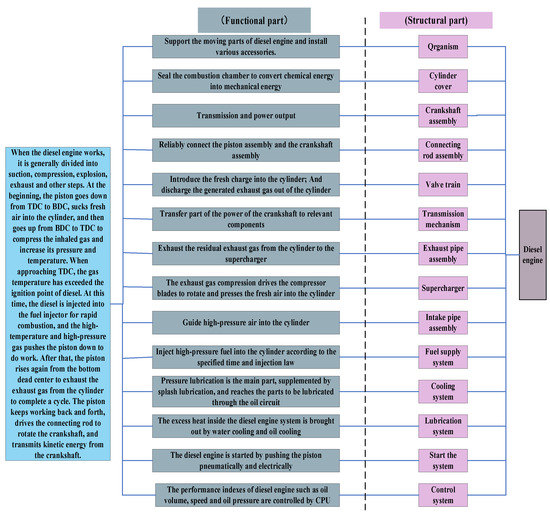 Vehicle diesel engines [1] are mainly used in the transportation industry and represent the main driving force for heavy vehicles. A variety of factors are considered when selecting a diesel engine for a heavy vehicle, including the reliability and availability of the engine, the maintenance and installation costs of the engine, and the running costs of the engine. However, the operating and maintenance costs of each diesel engine are very important for vehicle operation. This is why transport companies are committed to developing and improving engine performance to suit their operations and optimize engine performance control. Improving engine performance is the key to ensuring the best results during use and predicting faults in time to extend the service life of the vehicle. Therefore, it is necessary to focus on improving the reliability of vehicle diesel engines. The most effective way to improve the working reliability of a diesel engine is to introduce the concept of reliability at the design stage [2] and to prevent potential hazards by using the corresponding reliability calculations and analyses (reducing the costs of product manufacture and improving the reliability of the product life cycle in the process). In this regard, the reliability analysis and its management at the design stage are particularly important. Therefore, in this study, 4F integration technology was used to control the reliability of a diesel engine at the design stage.