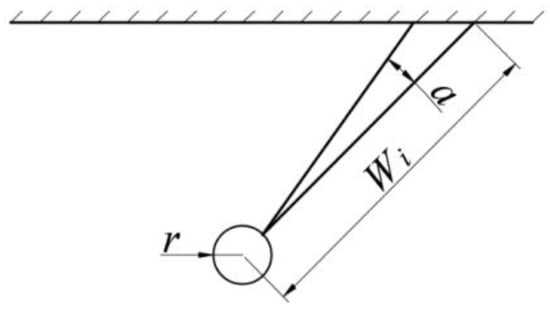 where P is the pressure to which the unit is subjected; throughout the explosion, the unit is subjected to pressure by the explosion shock wave, stress waves, and explosive gas composition. The pressure its changes with time and can be seen as a function of time, which is denoted by P(t); S is the area of the unit under pressure, S = π(rα/2)2 (when α < 5°, sinα = α, and rα = L). A function of time is denoted by r(t). m is the mass of the unit, m = πρrWi(αWi/2)2/3. a is the acceleration, which is denoted by dv/dt. Equation (6) can be expressed as: