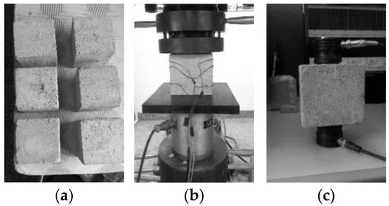 Division diagram of explosion cavity: (a) standard specimens, (b) compression test, (c) acoustic testing.