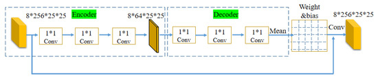 The proposed RmE method adjusts the response map by calculating its own mean and variance. After obtaining response map with the size of 8*256*25*25, we adjusted the response map through encoder and decoder. In the encoder, in order to reduce the amount of computation, we used 1 × 1 convolution to adjust the response map and adjust the channel size from 256 to 64. In the decoder, we adjust the mean and variance of response maps in the same batch by batch normalization and restored the number of channels through 1 × 1 convolution. Because the targets of the same batch are same in the training process, the batch normalization of the response maps enables more target information to be obtained. The output is then averaged. The result was used as the weight of convolution kernel, and channel 0 of each data was used as the bias of the convolution kernel. Through this special convolution method, we adjusted the original response map to allow it to obtain global context information and enhance the discrimination ability of this network, so as to deal with similar object interference and significant appearance changes of the target.