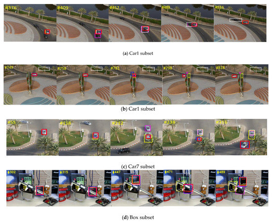 In order to show the difference between the baseline tracker and ours, and further illustrate the performance of the proposed module in dealing with similar object interference and occlusion, the interested objects of the algorithm are displayed in Figure 9.