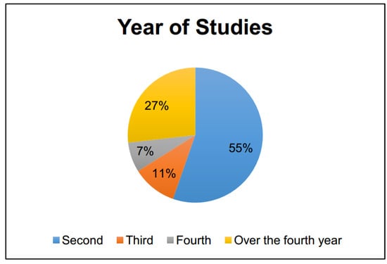 Distribution of students based on their year of studies.