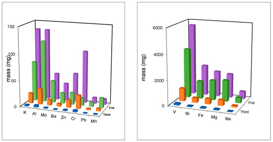 Figure 4. Mass (mg) of elements after each cycle of treatment.