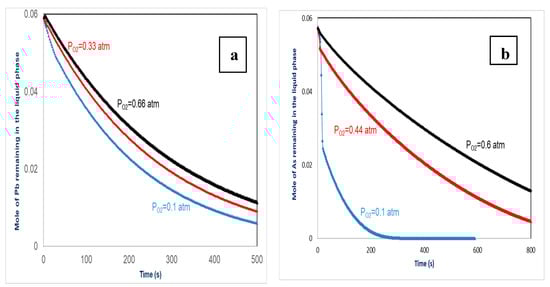 Figure 8. Influence of partial pressure of oxygen on the volatility of: (a) Pb, (b) As.