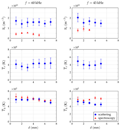 - Hübner, S.; Santos Sousa, J.; Graham, W.G.; van der Mullen, J.J.A.M. Thomson scattering on non-thermal atmospheric pressure plasma jets. Plasma Sources Sci. Technol. 2015, 24, 054005. [Google Scholar] [CrossRef] [Green Version]