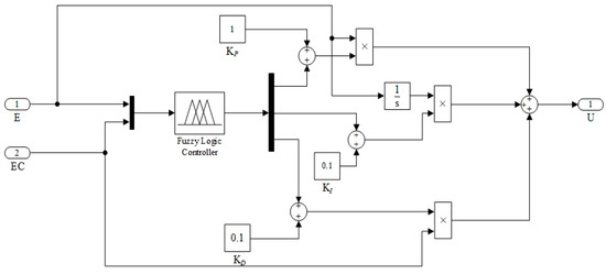 The clamping force servo control system controls output force of the driving cylinder of the hook-pull device by adopting fuzzy adaptive PID control algorithm. The control algorithm model was established in MATLAB/Simulink, as shown in Figure 10.