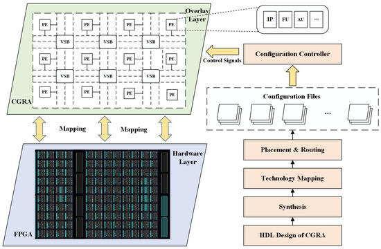 - Kulkarni, A.; Vasteenkiste, E.; Stroobandt, D.; Brokalakis, A.; Nikitakis, A. A Fully Parameterized Virtual Coarse Grained Reconfigurable Array for High Performance Computing Applications. In Proceedings of the 2016 IEEE International Parallel and Distributed Processing Symposium Workshops (IPDPSW), Chicago, IL, USA, 23–27 May 2016; pp. 265–270. [Google Scholar]