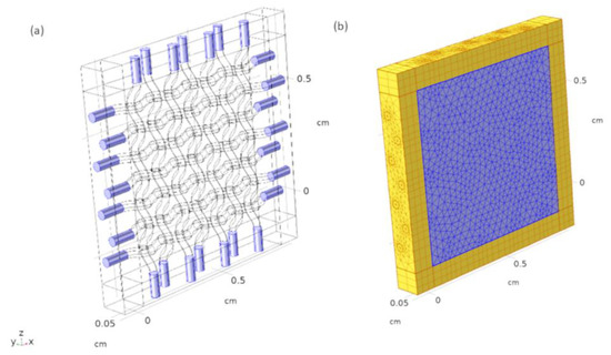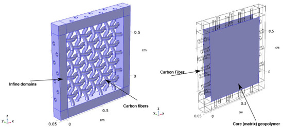 Figure 2 shows the cross section of the carbon fiber reinforced geopolymer composite. The infinite domains that present within the boundary wall of the geometry truncate to model a boundary stage of fibers. Based on the heat transfer module, infinite element domains could suppress boundary effects.
