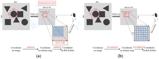 Schematic diagram of the RoIPooling and RoIAlign. (a) RoIPooling; (b) RoIAlign.