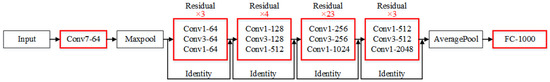 For a backbone network, this study selects the deeper ResNet101 network to ensure the feature extraction capability. This network can achieve residual mapping while providing a shortcut connection to achieve identity mapping, which solves the problem of accuracy decrease with the network depth. The structure of the ResNet101 is displayed in Figure 4.