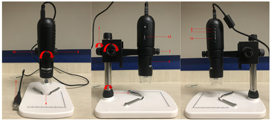 To improve the efficiency of defect detection and enable the factory to realize intelligent detection, first, a camera sensor capable of capturing high-definition images of the produced parts was considered. A 1080P HDMI digital microscope, shown in Figure 9, was selected for acquiring high-definition images of the parts. The image sensor was capable of producing three million pixels with a static camera resolution of 1280 × 720 and a magnification of 10–220 times. The manual focusing range was from zero to 150 mm.