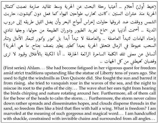- Although the Arabic literature genre comprises part of the data of some general corpora, it is not clear what subgenres of Arabic literature are included in those corpora, i.e., we do not know whether Arabic or Saudi novels are included. An example of this issue is seen in the University of Jordon Arabic Corpus [46]. Although the developers of this corpus explicitly state that Arabic literature constitutes only 7% of the total of the corpus (around half a million words), no information is provided about the subgenres of Arabic literature. This drawback is also true for the NEMLAR Written Corpus [44], Corpus of Historical Arabic [34], and Corpus Linguistic Tools for Historical Semantics in Arabic [47].
