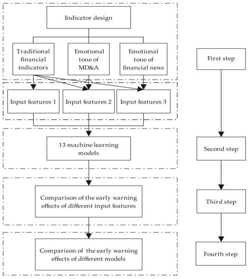 As shown in Figure 1, the steps of the empirical process of financial crisis warning in listed companies based on thirteen machine learning models are as follows.