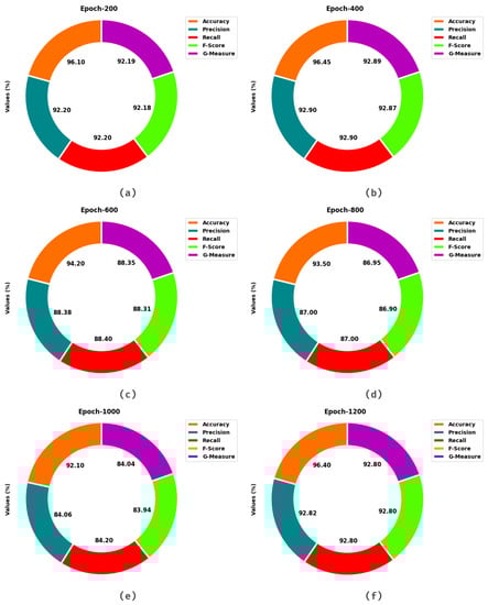 Average analysis of MDTL-ICDDC technique (a) epoch 200, (b) 400 epoch, (c) epoch 600, (d) epoch 800, (e) epoch 1000, and (f) epoch 1200.