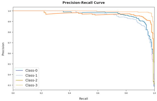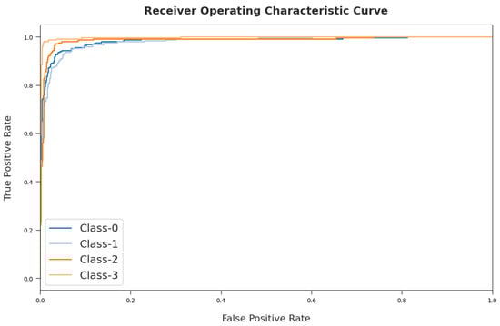 A detailed ROC investigation of the MDTL-ICDDC approach on test dataset is depicted in Figure 10. The results indicated that the MDTL-ICDDC model has exhibited its ability in categorizing four different classes 0–3 on the test dataset.