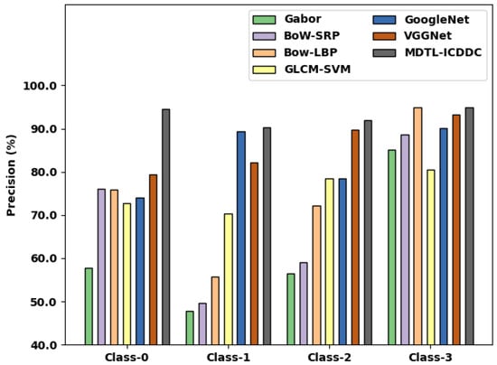 Precision analysis of MDTL-ICDDC technique with existing algorithms under various classes.