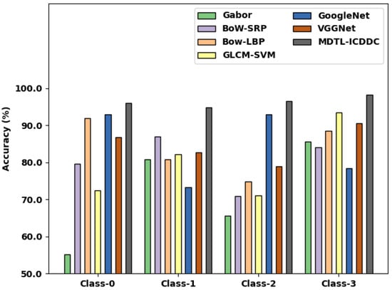 Accuracy analysis of MDTL-ICDDC technique with existing algorithms under various classes.