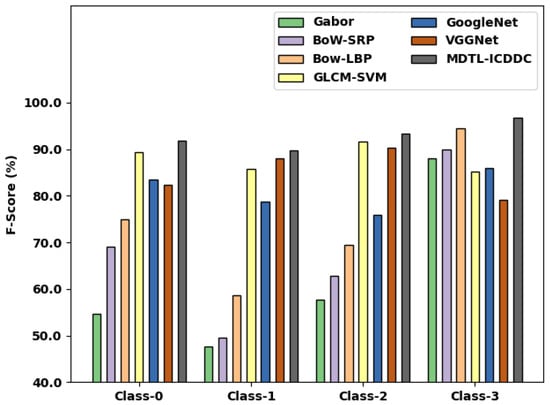 Table 3 and Figure 11 inspect a comparative inspection of the MDTL-ICDDC model with other models under distinct classes [30,31]. The experimental results indicated that the Gabor and BoW-SRP models have shown lower classification results with least average of 61.83% and 68.33% respectively. Likewise, the BoW-LBP and GLCM-SVM models have accomplished slightly improved average values of 74.68% and 75.47% respectively. At the same time, the GoogleNet and VGGNet techniques have resulted in reasonable average values of 82.98% and 86.14% respectively. However, the MDTL-ICDDC model has gained maximum average of 92.90%.