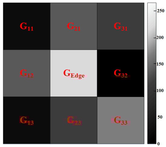 Figure 5 illustrates the calculation principle of the eight-neighborhood grayscale difference method. For each edge point (GEdge denotes an edge point in the figure below), the four grayscale differences of its eight-neighborhood pixel points are calculated along the horizontal, vertical, 45°, and −45° directions, respectively, namely: