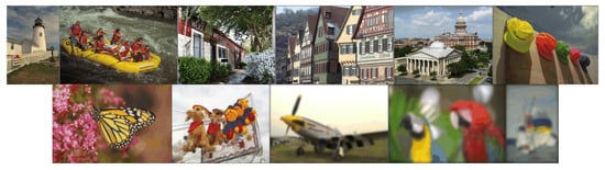 The second experiment was different from the first experiment. Its selected images were all from the Gaussian blurred images of the LIVE database. These images had different blurring degrees and were not correlated with each other, as shown in Figure 18.