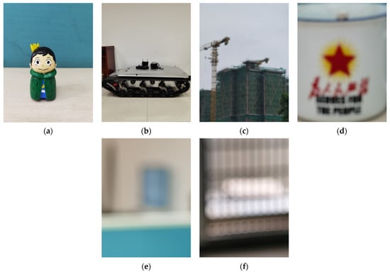 Real shooting images: (a) toy; (b) vehicle; (c) building; (d) cup; (e) indoor; (f) door.