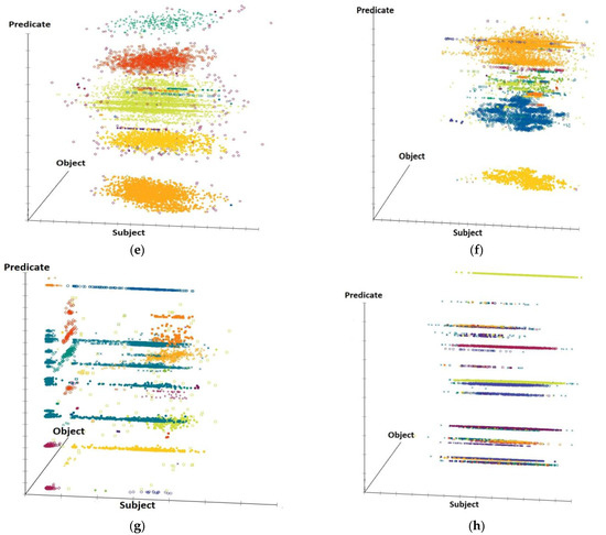 Visualization of the embedded LUMB dataset. (a) TransE, (b) TransH, (c) TransR, (d) RESCAL, (e) Complex, (f) DistMult, (g) ConvE, (h) LearnS.