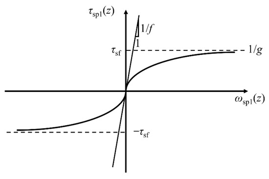 The laboratory and field test results show that the nonlinear relationship between the pile–soil shear stress and the relative displacement at the pile–soil interface can be expressed as a hyperbolic or exponential function. Zhang et al. [29] carried out load tests on instrumented tension piles to investigate the reliability of the hyperbolic function to model the load transfer between pile shaft and surrounding soil. The results showed a close agreement between test results and predicted values estimated by the hyperbolic function in different soils. Thus, the hyperbolic function is adopted to model the behavior of the pile–soil interface, as shown in Figure 3. The hyperbolic function can be expressed as:
