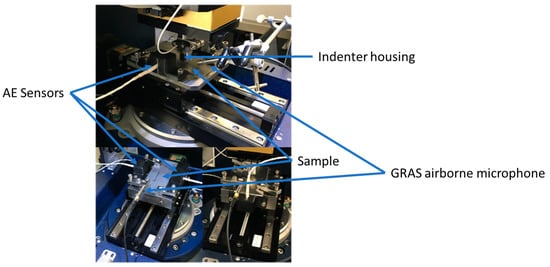 Scratch tests were performed to compare the differences in AE from scratching differing materials under differing loading conditions. The scratch tests were performed using a Bruker TriboLab machine, Figure 2. The parameters for each test are shown in Table 1. Samples were scratched against a 6-mm-diameter tool steel ball bearing under a constant speed (1 mm/s) and both constant (1 kN) and increasing loading profile (0.3 to 1.5 kN), for a scratch length of 20 mm and 40 mm, respectively. The setup is shown in Figure 2.
