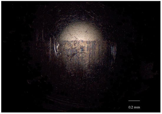 Indenter for test 4, showing no transferred material from the steel sample to the indenter.