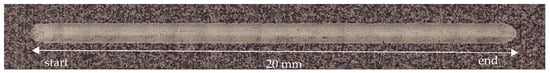 The AE apparatuses used for all tests were two contact Physical Acoustics WD AE sensors connected to a data acquisition (DAQ) unit with two pre-amplifiers. The amplification to each sensor was maintained at 20 dB, with a 35 dB threshold selected for the DAQ. Based on the sensor power spectrum, AE devices are suitable for a range of frequencies between 70 kHz and 1 MHz. The positions of the sensors were moved between tests to observe the effect of the positions of the sensors on the measured AE signal. These positions were on the scratch face parallel to the scratch direction, on the scratch face perpendicular to the scratch direction, on the “edge” of the sample parallel to the scratch direction, and on the “edge” of the sample perpendicular to the scratch direction. A schematic of the sensor positions is given in Figure 5. It must be stressed that only 2 AE sensors were used during any one test, as indicated by the sensor configuration described in Table 1.