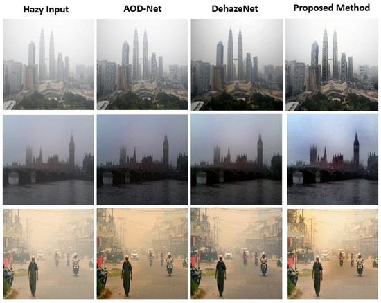 - RESIDE-SOTS and RESIDE-HSTS were used as the testing image-dehazing-quality datasets, which improved the peak signal-to-noise ratio (PSNR) and structural similarity (SSIM) compared to other state-of-the-art image-dehazing methods.