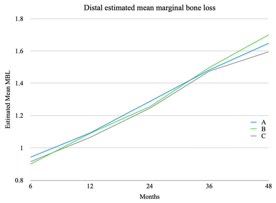 Table 6. Average marginal bone loss (millimeters) of distal implants (I2) observed during follow-up.