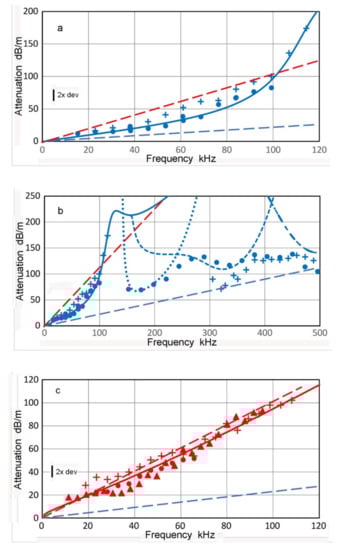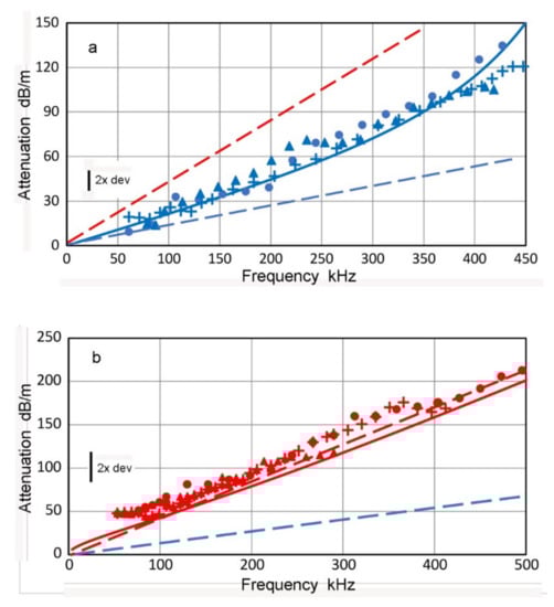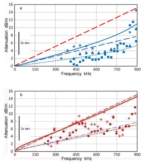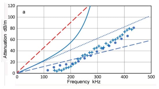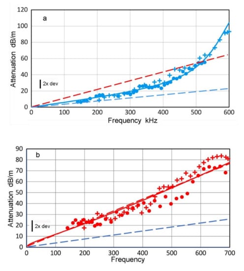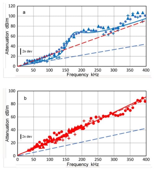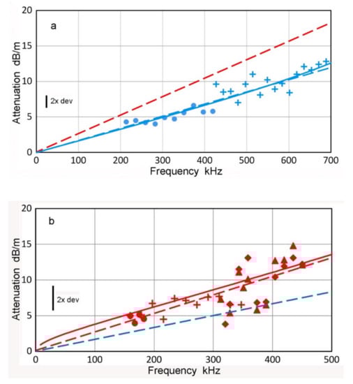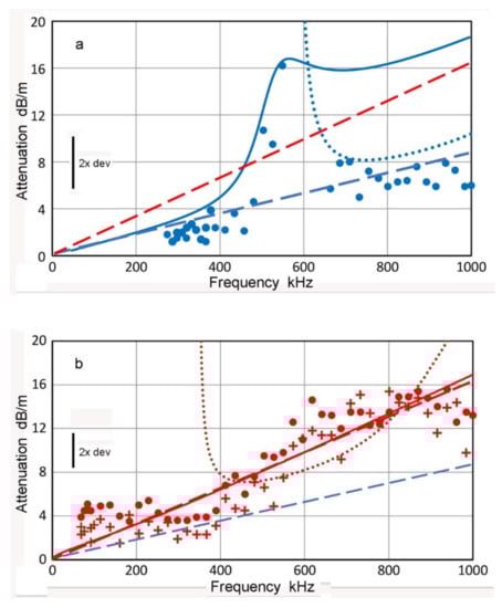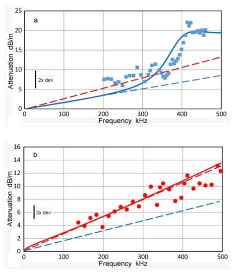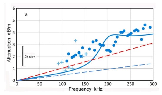26]. In turn, when such verification materializes, the experimental methods utilized in the bulk-wave attenuation measurements are validated. This is an added incentive of the present study. Note also that the two attenuation studies [