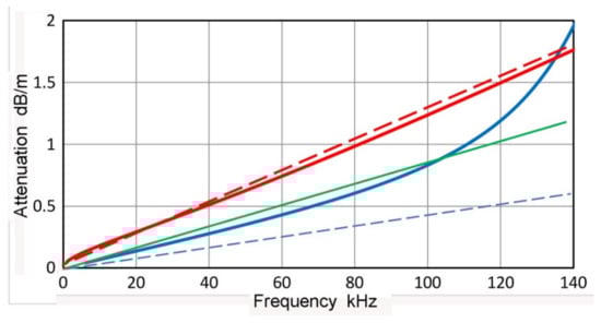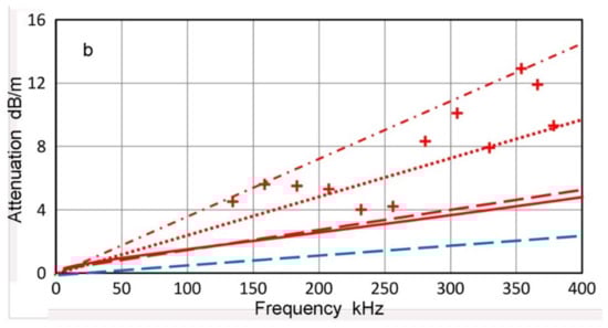o = 0.25 dB/m at 30 kHz, and this value agrees well with the measured pipeline attenuation of 0.17 dB/m [