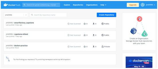 - Docker Hub Documents. Available online: https://www.docker.com/products/docker-hub/ (accessed on 5 April 2022).