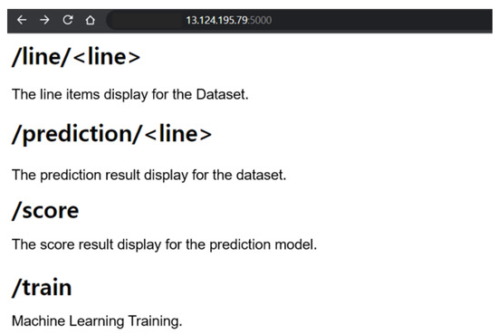 The main function of the Docker Container, i.e., Rest-Api, is implemented. First, the model training is conducted at the same time Docker is executed, and when the user inputs three commands, i.e., line, prediction, and Evaluation (score), to the web server, the corresponding result is output. When outputting the data, Prediction outputs the prediction results of the four models described above, whereas Evaluation (score) outputs the overall accuracy of the test set for the currently trained model.