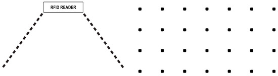 Thus, depending on the accuracy and range, we could determine the overall location. Moreover, for finer locations and pinpointing exact coordinates, we can use more neighbors and then obtain weights for each reference tag; upon obtaining the weights, we can then simply place the location points using the weighted value. This would be practical for finer location values, but considering the abundancy and relative price of passive RFID tags, being cheap, we can afford to instead simply use multiple RFID tags. When the final setup is made, the arrangement will resemble Figure 7.