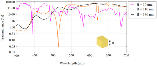 Transmittance when H is varied from 10 to 130 nm.