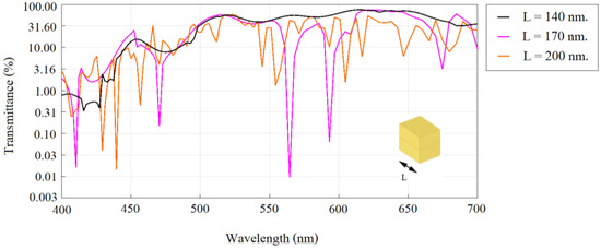 Transmittance when L is varied from 140 to 200 nm.