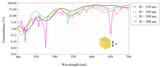 Transmittance when H is varied from 130 to 200 nm.