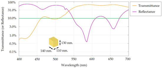 Transmittance and reflectance of the nanocube at optimal dimension.