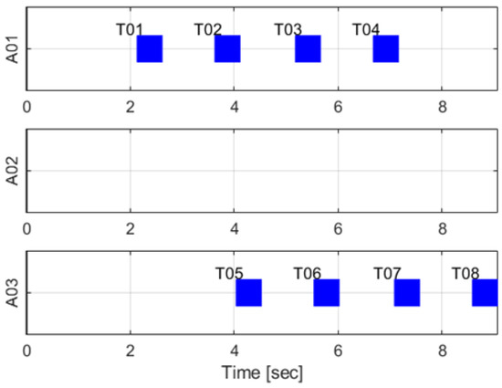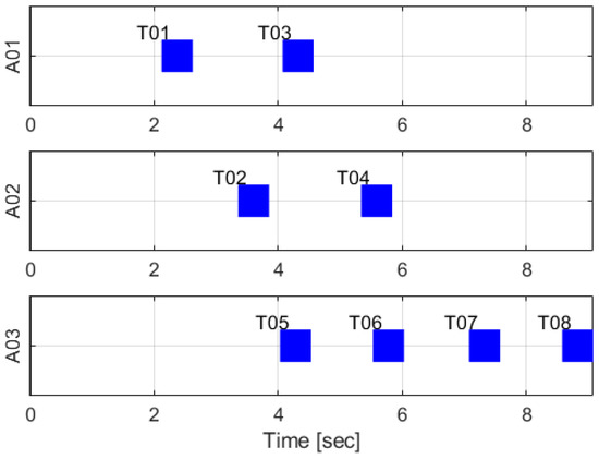 | 8 | End during task q | (8.1) Task q is not allocated yet or (8.2) Task q is allocated to agent A or (8.3) Task q has relationship (except ‘After’) with task r, task r is allocated to agent A and agent A cannot finish task p after finishing task r |